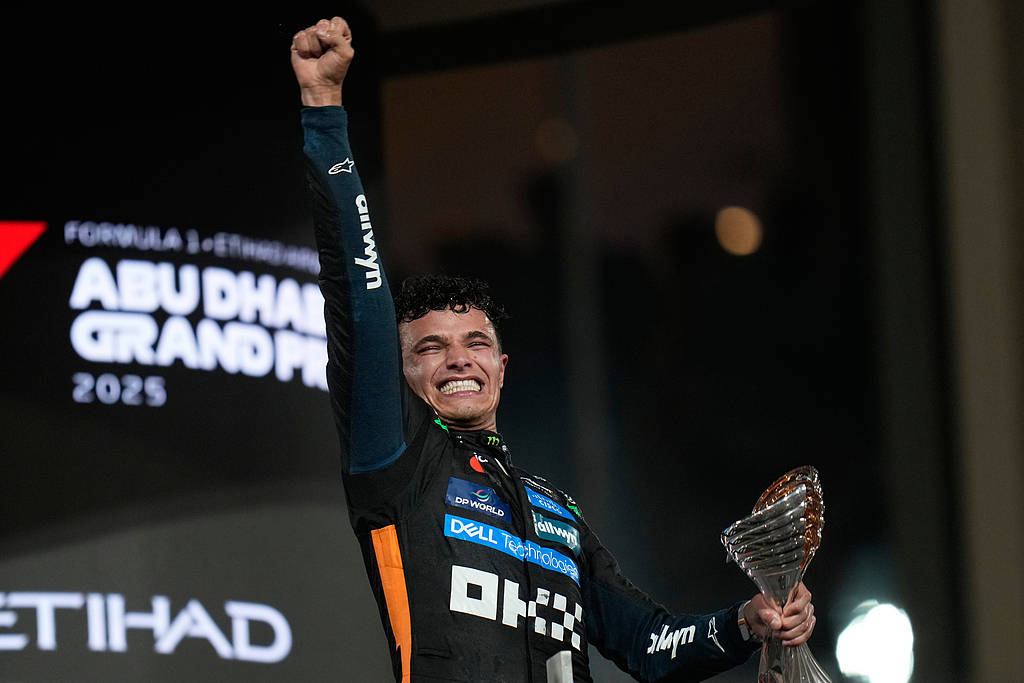 北京时间12月7日晚间,2025赛季F1收官站阿布扎比大奖赛,红牛车手维斯塔潘获得本站冠军;迈凯轮车手诺里斯第三名完赛,以423分的总积分职业生涯首次加冕F1车手总冠军。